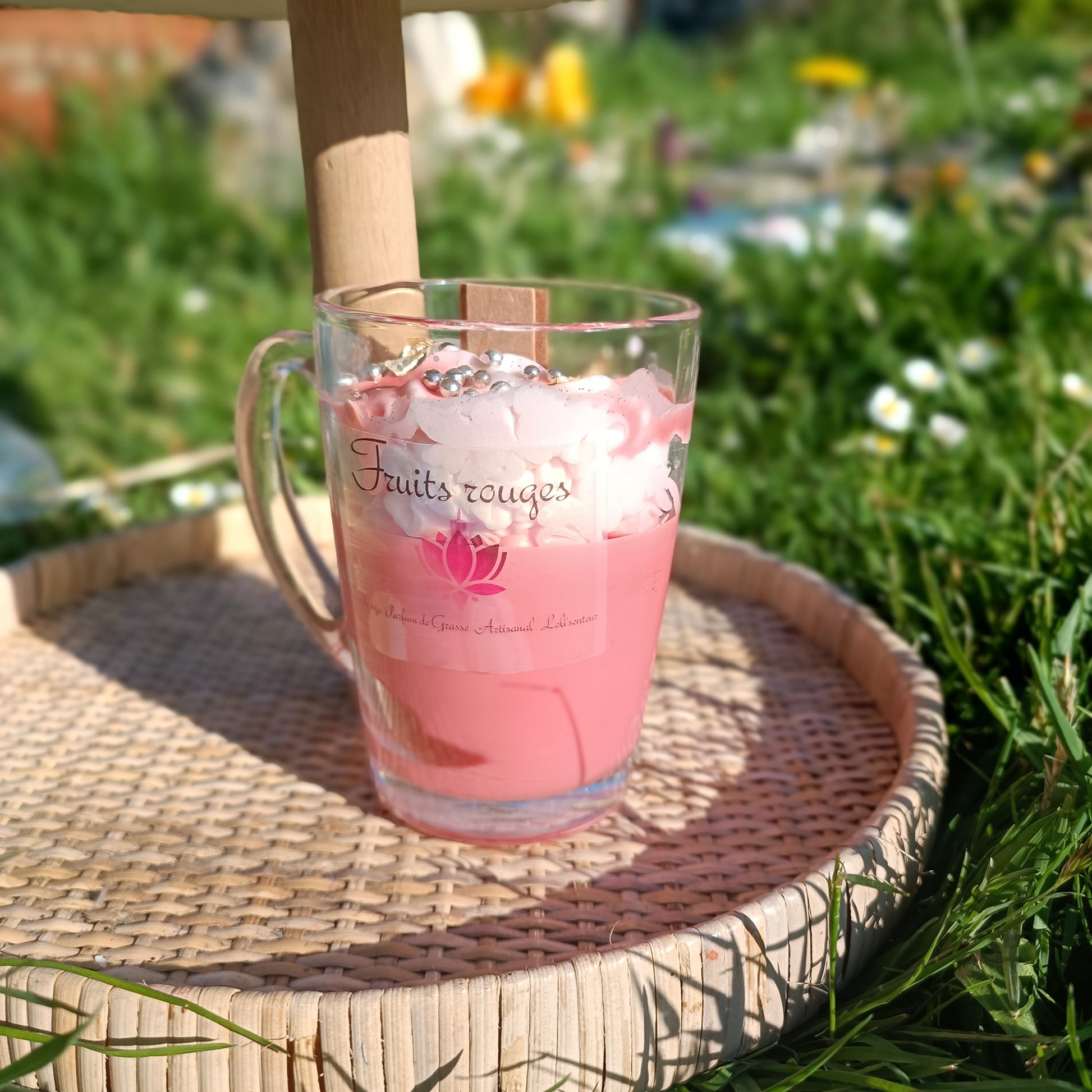« Profitez d’un délicieux parfum fruité avec notre Mug Gourmand aux fruits rouges. Fabriqué avec de la cire de soja, cette bougie décorative ajoutera une touche de chantilly à votre espace.